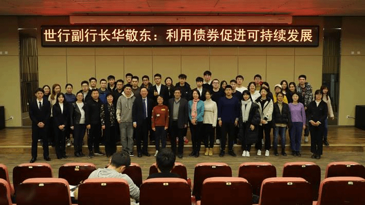 Hua Jingdong, Vice President and Treasurer of the World Bank, delivered a lecture titled “How to Promote Sustainable Development Through Bonds” at the underground lecture hall of the library of CUFE’s Shahe Campus at 14:00 on December 13. CUFE Vice President Shi Jianping, Director of the Research Management Office Jia Yuge, Party Secretary Mao Jing and Deputy Party Secretary Li Junfeng of the School of Finance attended the event, along with more than 200 students.