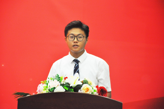 两位新生代表刘心悦和李一鸣表达了成为中财大一员的自豪和骄傲,并代表全体新生发出了承诺,要以昂扬的姿态迎接崭新的大学生活,以更高的标准严格要求自己,提升语言水平和国际视野,勇担中央财经大学赋予大学生的责任与使命,为学校增光添彩。