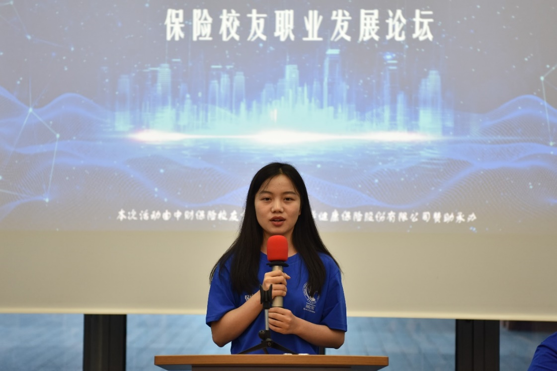 21级保险学硕赵青青作为新校友代表发言,她表达了对校友会举办这次活动的感谢,认为本次活动让大家获得了满满的归属感与集体荣誉感。