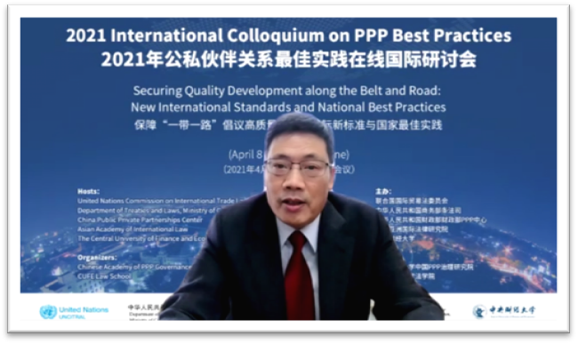 4月8日、9日,由联合国国际贸易法委员会、中华人民共和国商务部条法司、中华人民共和国财政部政府和社会资本合作中心、亚洲国际法律研究院和中央财经大学联合主办,中央财经大学政府和社会资本合作治理研究院、中央财经大学法学院承办的2021年公私伙伴关系最佳实践国际研讨会在北京隆重召开。受新冠肺炎疫情影响,本次研讨会以线上会议的形式进行。研讨会的主题是“保障‘一带一路’倡议高质量发展:国际新标准与国家良好实践”。在两个半天的会期里,与会嘉宾围绕政府和社会资本合作(PPP)立法和PPP全生命周期的相关问题展开了深入而富有价值的对话交流,分享了PPP项目高质量发展的有益经验。来自全球5大洲近60个国家和地区的350多名观众参加了本次会议。