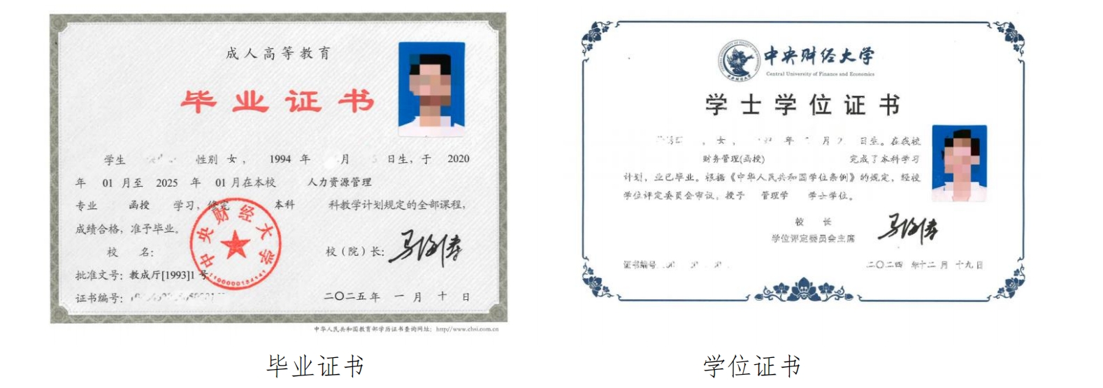 达到授予学位条件的,由中央财经大学学位委员会授予学士学位,颁发高等学历继续教育学士学位证书,按教育部规定进行学位电子注册,在“中国学位与研究生教育信息网”可以查询。