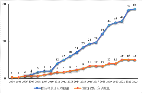 国家级资助项目包括自然科学基金面上项目24项、青年项目32项;国家社会科学基金重大项目2项、重点项目2项、一般项目7项、青年项目2项、后期资助项目2项。