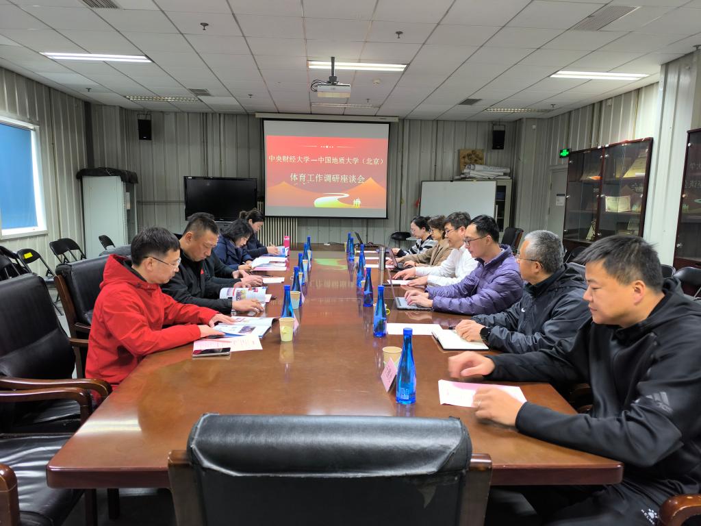 2025年3月14日上午,中国地质大学(北京)体育部主任马凯一行5人来访我院,开展调研交流活动。我院院长张本家、副院长张丛杉、党委副书记陈绮文、以及其他教研室、科室主任等参与了此次活动。